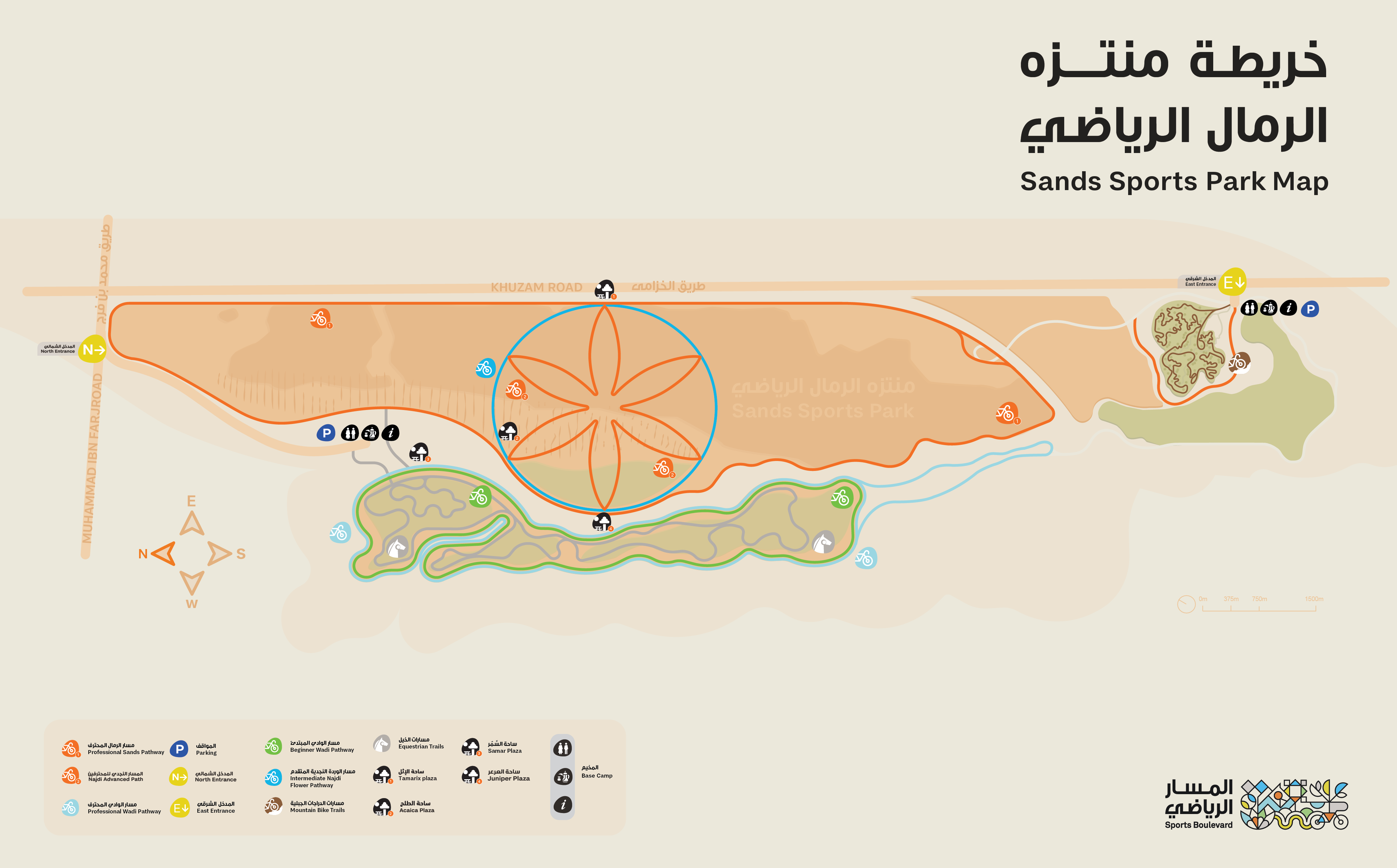 اكتشف متعة الرياضة وسط المساحات الرملية الشاسعة، واستعد للعديد من المغامرات المثيرة عبر المسارات المتنوعة في تناغمٍ كامل مع الطبيعة.
